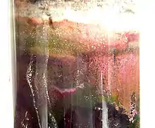 Purple sulfur bacteria (like green sulfur bacteria) typically form blooms in non-thermal aquatic ecosystems, some members have been found in hot springs.[34] For example Chlorobaculum tepidum can only be found in some hot springs in New Zealand at a pH value between 4.3 and 6.2 and at a temperature above 56 °C (133 °F). Another example, Thermochromatium tepidum, has been found in several hot springs in western North America at temperatures above 58 °C (136 °F) and may represent the most thermophilic extant Pseudomonadota.[30] Of the purple sulfur bacteria, many members of the Chromatiaceae family are often found in fresh water and marine environments. About 10 species of Chromatiaceae are halophilic.[35]