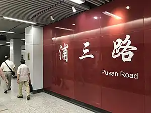 Pusan Road (Chinese: 浦三路; pinyin: Pǔsān Lù) is a station on Line 11 of the Shanghai Metro, which opened on August 31, 2013.[1]