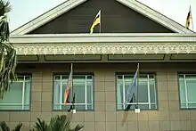 Flags of Germany and the European Union on the Yayasan Sultan Haji Hassanal Bolkiah Complex