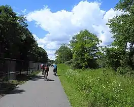 The Putnam County Trailway is a paved 12-mile (19 km) bicycle and pedestrian trail in Putnam County, New York. With few exceptions, it follows the former right-of-way of the New York and Putnam Railroad from the northern end of the North County Trailway at the Putnam County line in Baldwin Place north, then east, to Carmel. In 2011 the trail was extended east to Brewster.[1] In late summer 2018, a final section bypassing portions of Putnam Ave in Brewster, which was formerly closed off with construction barriers and signs, has been opened. The Brewster station of the Metro-North Railroad is a short distance away.