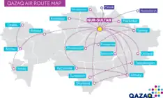 Qazaq Air (Kazakh: Qazaq Eir) is a Kazakh airline operating scheduled services from its main hub in Astana and focuses on domestic flights.[2]