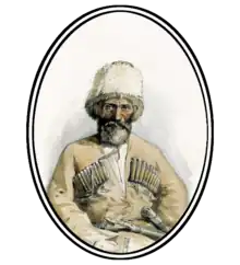 He was involved in battles since his youth. Just like the Yecheniqo brothers, he always rushed to fight against the Russians, save villages from Russian occupation and free captives. The detachment led by him took active part in the battles of 1840, in which the Black Sea coastline was invaded by Russia. Because of his bravery, he became the hero of many legends and historical songs. His martial arts, military genius and incomparable courage brought him great fame not only in the Caucasus, but also (thanks to foreign representatives) in European states.[1][2][3] In the memories of the British, he appears as a very colorful figure, a fearless knight with an indomitable character. James Bell named him "Richard the Lionhearted Circassian".[3]