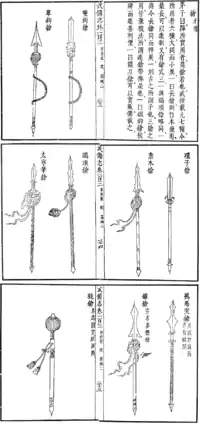 Qiang (pronunciation: [tɕʰjáŋ], English approximation: /jɑːŋ/ chyahng, simplified Chinese: ; traditional Chinese: ; pinyin: qiāng) is the Chinese term for spear.[1] Due to its relative ease of manufacture, the spear in many variations was ubiquitous on the pre-modern Chinese battlefield. It is known as one of the four major weapons, along with the gun (staff), dao (sabre), and the jian (straight sword), called in this group "The King of Weapons".[2]