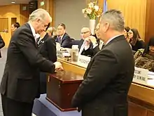Qirko (left) voting at the IMO in 2019