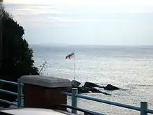 The banner of the city – the St. George's Cross – floats above the sea near the shore of Quarto