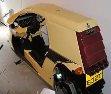 The Quasar is a semi-enclosed feet forward motorcycle, created by Malcolm Newell and Ken Leaman,[1] who made a number of similar vehicles.[2] It repurposed an 850 cc four-cylinder inline engine used in the Reliant Robin three-wheeled light car and is capable of cruising at 90100 mph (145160 km/h) and exceeding 100 mph in favourable conditions.[3]