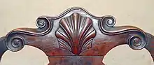 Curved lines, in feet, legs, arms, crest rails, and pediments, along with restrained ornament (often in a shell shape) emphasizing the material, are characteristic of Queen Anne style.[5] In contrast to William and Mary furniture, which was marked by rectilinearity (straight lines) and use of curves for decoration, Queen Anne furniture uses C-scroll, S-scrolls, and ogee (S-curve) shapes in the structure of the furniture itself.[5] In sophisticated urban environments, walnut was a frequent choice for furniture in the Queen Anne style,[5] superseding the previously dominant oak and leading to the era being called "the age of walnut."[6] However, poplar, cherry, and maple were also used in Queen Anne style furniture.[11]