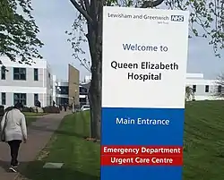Sign at main entrance Queen Elizabeth Hospital
