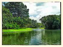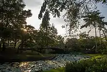 Queen Sirikit Park is a botanical garden in Chatuchak District, Bangkok, Thailand. Covering an area of 0.22 km2, it is part of the larger Chatuchak Park complex. It was established in 1992 and named after Sirikit, Queen of Thailand to celebrate her 60th birthday. It contains many fountains and pools where lotus flowers bloom. The park has a high biodiversity in an ecosystem which has a great variety of plants and butterflies. There is a great variety of banana cultivars, a great variety of palm tree cultivars, a great variety of hibiscus, a great variety of lotus, more than 200 species of waterlilies, a great variety of new species of plant in the world, a great variety of coconut cultivars, a great variety of bamboo cultivars, and a great variety of rare plants as well as plants endemic to Thailand.