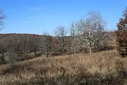 The park contains 564-acres of forest, prairie, and riparian environment in suburban St. Louis. The 4.4-mile, mixed gravel and paved Hawk Ridge Trail navigates the perimeter of the park, with multiple shorter trails on the park's interior. Visitors can sometimes see horses in the prairie on the north and west sides of the park, as the park is frequently used for equestrian events. A creek in the Meramec River watershed runs north to south through the park, feeding a fishing pond at the park's southern end.