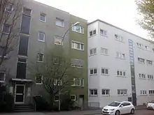 Apartment blocks in Römerstadt. The building on the right is part of the 1920s 'New Frankfurt' scheme.