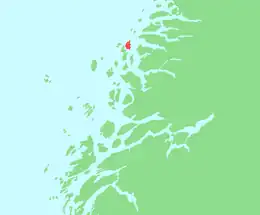 Rødøya is an island in the municipality of Rødøy in Nordland county, Norway. The 8.5-square-kilometre (3.3 sq mi) island is located just west of the mouth of the Tjongsfjorden, north of the island of Gjerdøya, and west of the mainland. There are ferry connections from the village of Rødøy to the village of Jektvika on the mainland and to the nearby island of Gjerdøya. Rødøy Church is located in the village of Rødøy on the south side of the island. The island had 150 residents in 2017.[1]