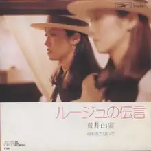 Rūju no Dengon (ルージュの伝言, Lipstick Message, Message in Rouge, Rouge no Dengon) is the fifth single by Japanese singer-songwriter Yumi Arai, released in February 1975. This was her first single to enter the Oricon Singles Chart.
