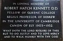 Robert Hatch Kennett (9 September 1864 – February 15, 1932) was Regius Professor of Hebrew at the University of Cambridge from 1903 to 1932.[1][2]