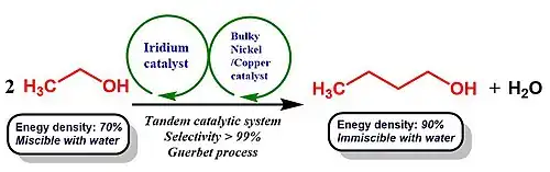 - ↑ Chakraborty, Sumit; Piszel, Paige E.; Hayes, Cassandra E.; Baker, R. Tom; Jones, William D. (18 November 2015). "Highly Selective Formation of n-Butanol from Ethanol through the Guerbet Process: A Tandem Catalytic Approach". Journal of the American Chemical Society. 137 (45): 14264–14267. doi:10.1021/jacs.5b10257. PMID 26526779.
