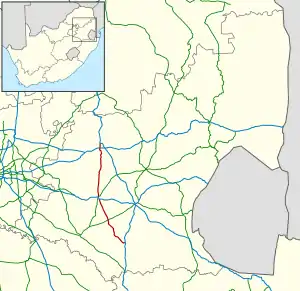 The R35 is a provincial route in Mpumalanga, South Africa that connects Amersfoort with Middelburg via Morgenzon and Bethal.[1] The R35 used to connect with the N3 near Ladysmith, but the portion of the road from Amersfoort onwards is now part of the N11.