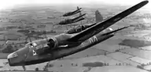 Flying activity in early 1941 was limited due to the poor condition of the airfield; improved weather in the Spring increased activity from 20 OTU and 46 MU, as well as from continued bomber detachments. Operational sorties were predominately undertaken by Blenheims of No. 21 Squadron, No. 82 Squadron, No. 110 Squadron and No. 114 Squadron. By the winter of 1941, the airfield had become so muddy that the Wellingtons of 20 OTU were temporarily relocated to RAF Lakenheath in Suffolk.[11] The increased activity by 46 MU resulted in two satellite landing grounds (SLG) being established to store aircraft off-site. These were at RAF Black Isle (42 SLG) where Bristol Beaufighters were kept and RAF Leanach (43 SLG) near Culloden, where Hurricanes and Supermarine Spitfires were stored.[10]