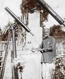 ![]() Radha Gobinda Chandra with his telescopes. The bigger one is from Harvard College Observatory | |