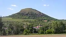 Radobýl (German: Radebeule; 399 metres (1,309 ft)) is a basalt hill in České středohoří mountains, Czech Republic. It rises above village of Žalhostice on right bank of the Elbe River 3 km west of Litoměřice. Part of the hill with abandoned basalt quarry and rich rock steppe flora is under protection as Radobýl Nature Monument (Přírodní památka Radobýl). The hill is a popular hiking destination. From huge metallic cross (erected in 1991) on the bare summit there is almost 360-degrees panoramic view of central part of České středohoří Mts., Litoměřice, Terezín and Lovosice.
