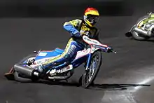 Okoniewski driving in the German Speedway Bundesliga