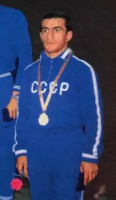 Rafig Hajiyev (Russian: Рафик Гаджиев, Azerbaijani: Rafiq Hacıyev, born 1946 in Baku)[1] is a retired Soviet freestyle wrestler of Azerbaijani origin. He held the Soviet and European titles in 1970, and won silver medals at the 1973 European and 1974 world championships.[2] He retired from competitions in 1976 and then had a long career as a police officer, reaching the rank of colonel. He remained active in wrestling as a coach.[1]
