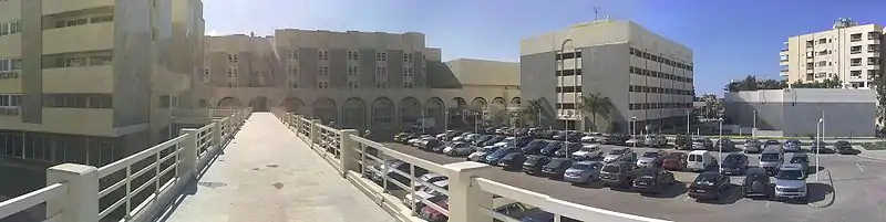 The Rafik Hariri University Hospital (Arabic: مستشفى رفيق الحريري الجامعي, RHUH) – formerly known as Beirut Governmental University Hospital (BGUH) – is the largest Lebanese public hospital, located on the outskirts of southern Beirut. The hospital's main building has a maximal capacity of 544 hospital beds; it comprises a total of seven floors with three annex buildings a 50 bed hotel and four villas hosting staff dormitories, outpatient clinics and administrative services. The hospital is affiliated with the Lebanese University.[1]