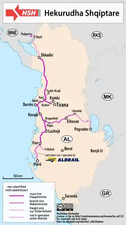 - ↑ admin (2022-06-20). "Rehabilitimi i linjës hekurudhore Tiranë-Durrës dhe ndërtimi i një lidhje hekurudhore me aeroportin e Rinasit". Hekurudha Shqiptare (in Albanian). Retrieved 2023-09-11.