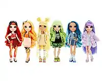 ![]() Rainbow High dolls from its launch in 2020. The characters, shown from left to right, are Ruby Anderson, Poppy Rowan, Sunny Madison, Jade Hunter, Skyler Bradshaw and Violet Willow. |