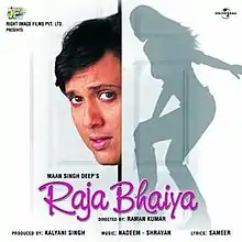 Raja Bhaiya (transl. Brother Raja) is a 2003 Indian Hindi-language comedy film produced by Kalyaani Singh and directed by Raman Kumar. It stars Govinda and Aarti Chhabria in the lead roles.[2][3][4]