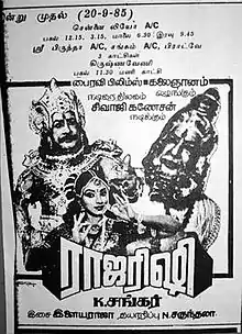 Raja Rishi is a 1985 Indian Tamil-language Hindu mythological film directed by K. Shankar and produced by N. Sakunthala. The film stars Sivaji Ganesan, Prabhu, M. N. Nambiar and Nalini. It was released on 20 September 1985.[1]