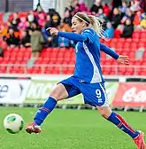 Rakel Hönnudóttir (born 30 December 1988) is an Icelandic footballer and musician who plays as a striker for Besta deild kvenna club Breiðablik and the Iceland national team. She represented her country at the UEFA Women's Championship in 2009 and 2013. Despite being a striker, she has seldom played as one for the national team, even featuring at right back.[1]