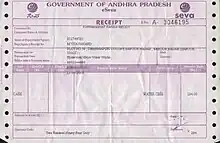 A Sample E-Seva Payment Receipt issued an E-Seva centre in Hyderabad.