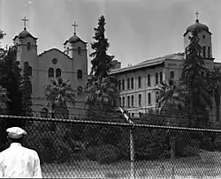 The James de Barth Shorb family donated 15 acres (6.1 ha) of the 31.5 acres (12.7 ha) of the original property. The first building to be built was a four-story red brick building on the knoll that dominated the Convent grounds. The dedication ceremony was presided over by the Right Reverend Bishop Mora of Los Angeles on January 29, 1890. The first commencement exercises were held on June 23, 1891. The groundbreaking ceremony for the major part of the school, took place April 18, 1910. In 1939, 3 acres (1.2 ha) were sold to the State of California for the San Bernardino Freeway (Interstate 10).[3]