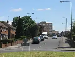 Like many post-war estates, Ramsden had entered a troubled period by the 1980s, with a rise in crime and anti-social behaviour earning it the nickname 'Little Belfast'.[2] In the 2000s decade the estate was regenerated under the 'Ramsden's Revival' scheme led by Broomleigh housing association.[1][3][2] There is a small row of shops on Eldred Drive.