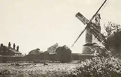 Ramsey Windmill was originally built in Woodbridge, Suffolk. It was the north westerly one of four mills on the Mill Hills shown on the 1838 tithe map. The mill was moved to Ramsey in 1842 by Henry Collins, millwright of Woodbridge. The mill was working until the Second World War, and then left to deteriorate until 1974 when the owner, Mr Michael Organ, set about restoring the mill.[2] Members of the Suffolk Mills Group assisted with work on Ramsey Windmill between 1974 and 1978.[3]