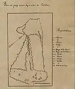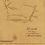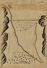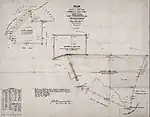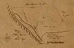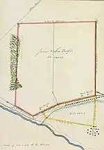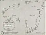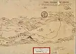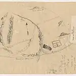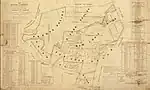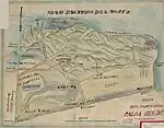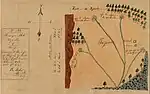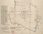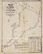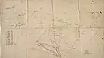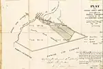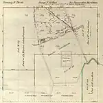 Diseños are hand-drawn maps submitted to the U.S. government indicating the extent of a land grant as understood by the grantees.[8] Diseños and expedientes (written descriptions of the grants) were used during the U.S. land-patent process that began when Mexican Alta California became the U.S. state of California in 1850.[8] Diseños are distinct from later maps produced by U.S. surveyors within the extant American rectangular survey system.[8] Several of the earliest surveys, or plats, of Los Angeles-area ranchos were done by Henry Hancock, who himself owned Rancho La Brea and through his son is a namesake of the Hancock Park neighborhood. As for the cattle brands, many of the large ranchos had multiple brands for various herds or during various eras; the single one included here is the earliest known example.[9] Land patents were ultimately granted to over 60 Mexican, Anglo and indigenous Angelenos; the indigenous contingent was represented by Doña Victoria Reid of Rancho Huerta de Cuati, who was Gabrieleño Tongva, and Odón Chihuya, Urbano Chari, and Manuel (later Espíritu Chijulla) of Rancho El Escorpión, who were from a leading family of Fernandeño Tongva.[3]
