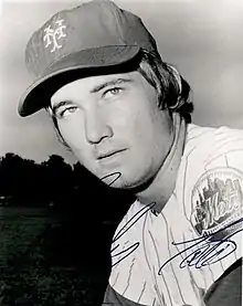 His record that year was 5 wins and 13 losses with an earned run average of 4.45.[1][2] While Tate is noted for never having achieved a Major League hit despite having 41 at bats,[3] he is best known for nearly pitching a no-hitter on August 4, 1975 at Shea Stadium against the Montreal Expos. Despite not allowing a hit through seven and one third innings, Tate ended up losing the game[4][5]—which seems to have been the final straw for Mets management regarding the tenure of manager Yogi Berra, who was fired the next day.