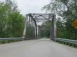 Rangeline Road Bridge is a historic Camelback Through Truss bridge that spans the Wabash River in Huntington Township, Huntington County, Indiana. It was built in 1913 by the Lafayette Engineering Co. of Lafayette, Indiana. It consists of two steel truss spans, each 128 feet long and 21 feet deep at mid-span.[2]:5