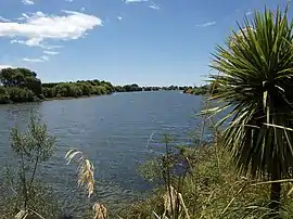 The arrival of Europeans in the area lead to draining of wetland and low-lying areas along the river to create usable agricultural and horticultural lands. To support these activities the Rangitaiki Land Drainage Act was passed in 1910. One the Rangitaiki plains approximately 40,000 hectares of wetland was drained and converted to farmland.[7] At the same time the existing dual discharges of the river towards the Whakatane River to the east and the Tarawera River estuary to the west were replaced by the cutting of a channel near Thornton to provide a new direct outlet for the Rangitaiki to the sea.[8] Within a day of the new outlet being opened in May 1914 the level of the Rangitaiki in the lower sections of the Rangitaiki Plains area dropped by approximately1.5 metres (4.9 ft). This fall of the river level encouraged further agricultural and horticultural development in this area following the end of World War I.