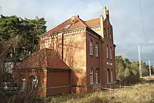 The military station, which was later developed as a suburban station is listed as part of the Military Railway in the heritage list of Brandenburg.[4]
