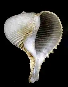 Rapa differs from Rapana not only in the produced canal of the aperture and thin simple whorls, but in the free, reflexed inner lip and moderate umbilicus.[2]