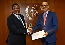 Molekane presents his credentials to Cornel Feruta of the International Atomic Energy Agency, 5 September 2019