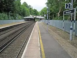 Ravensbourne railway station is in the London Borough of Bromley in south London. The station adjoins Beckenham Place Park and serves the north edge of Beckenham and Shortlands.