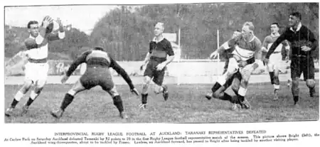 - ↑ "Auckland Defeats South/Visiting Team Weakened". The New Zealand Herald. Vol. LXXI, no. 21907. 17 September 1934. p. 13. Retrieved 19 January 2020.