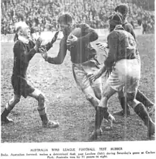 - ↑ "Australia Wins/Final League Test". New Zealand Herald, Volume LXXII, Issue 22233. 7 October 1935. p. 16. Retrieved 6 June 2021.