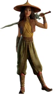 Raya is a fictional character in Walt Disney Animation Studios' animated film Raya and the Last Dragon (2021). Created by screenwriter Adele Lim, she is voiced by American actress Kelly Marie Tran.[1]