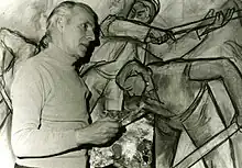 In 1936, he asked for an authorization to paint the workshops of the factory, in vain. During a dozen years, he painted many landscapes in which the factory can be seen in the background. In 1949, he was eventually allowed to come into the factory and to paint there. His first paintings focus on the giant tools of heavy metallurgy, but later he painted more and more often workers, who are shown in the center of the picture or just beside the big machines they dominate and that make them look tiny.