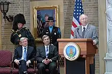 United States Secretary of the Interior Ken Salazar joined United States Secretary of Agriculture Tom Vilsack at a ceremony where Australian Prime Minister Kevin Rudd thanked United States wildland firefighters for their assistance