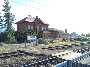 Recław[lower-alpha 1] is a railway station located in the village of Recław, Poland. It is operates on the railway line 401, between stations of Szczecin Dąbie and Świnoujście Port. The station is operated by the Polish State Railways. It has one platform.[1][2]