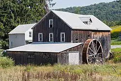 Reckart Mill, also known as Albright Mill, is a historic grist mill located near Cranesville, Preston County, West Virginia. It was built in 1865, and is a frame, 2 1/2-story gable roofed building that is built, in part, over Muddy Creek. It is notable for its interior structural beam support system of hand hewn pine timbers and mill machinery. Operations at Reckart Mill ceased in 1943. In 2017 the mill was torn down by the new owners and the surrounding area was clear cut by the owners.[2]